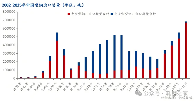 图:2023-2025全国型钢出口量 数据来源:钢联数据