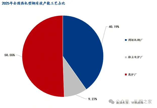 图:2025年全国热轧型钢有效产能工艺占比 数据来源:钢联数据