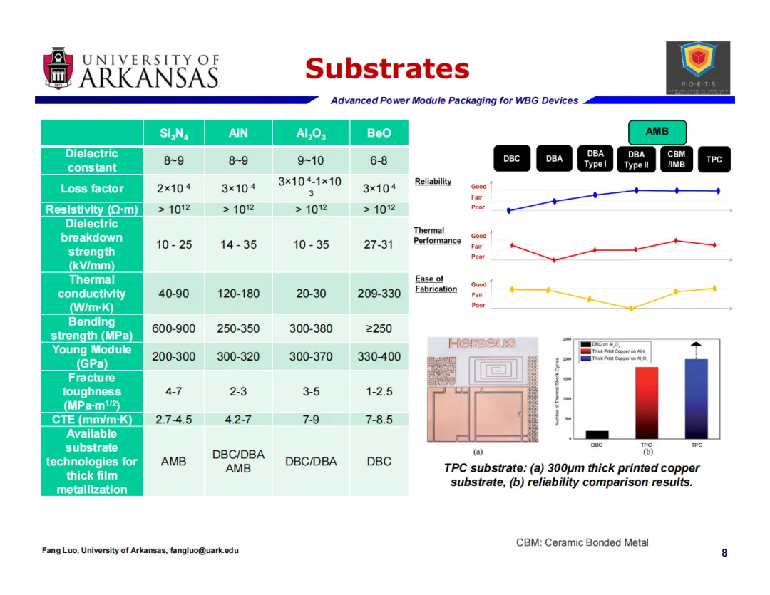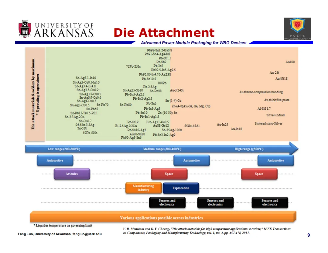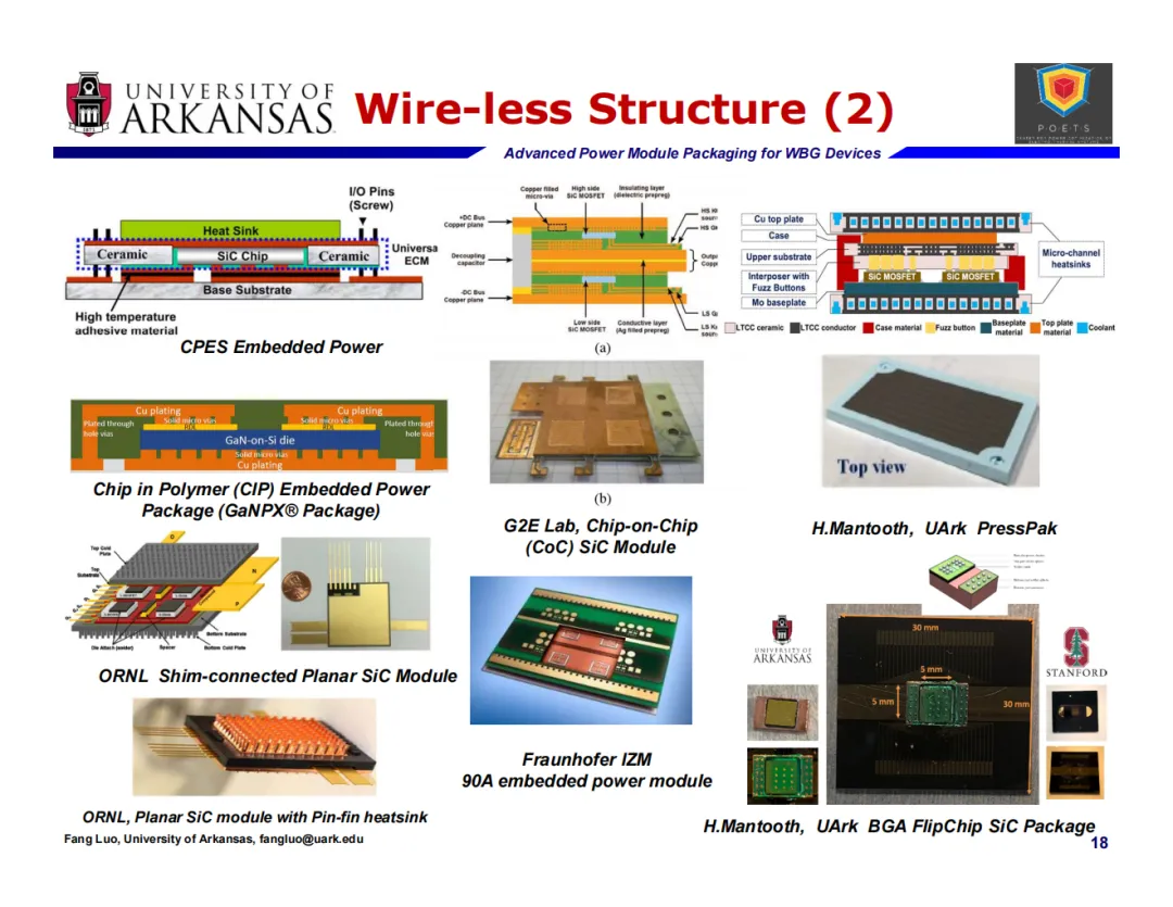 : 由Fang Luo教授领导的阿肯色大学HiDEC中心专注于高密度电子封装技术,涵盖柔性基板解决方案、陶瓷封装技术等。