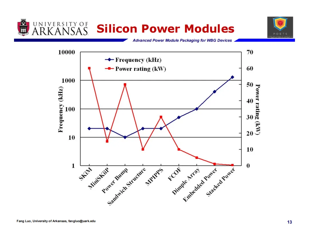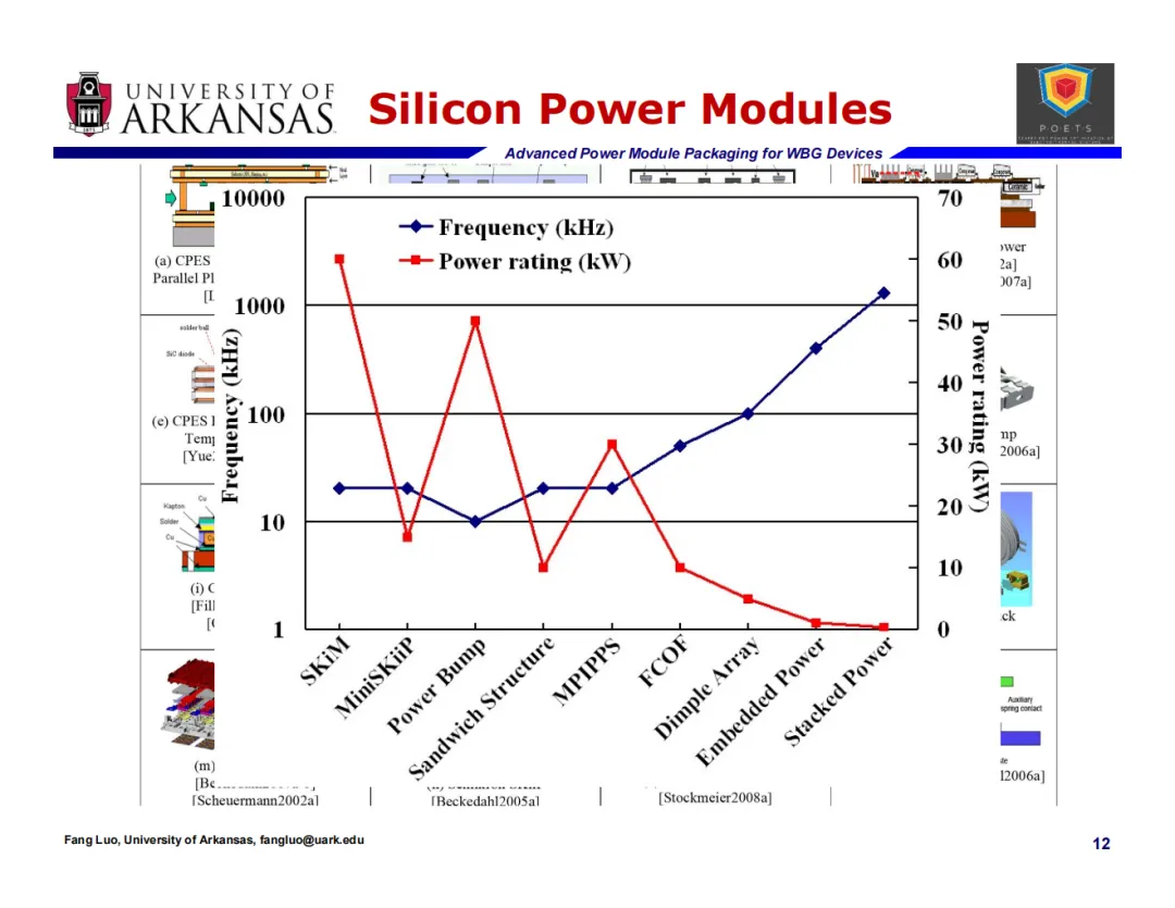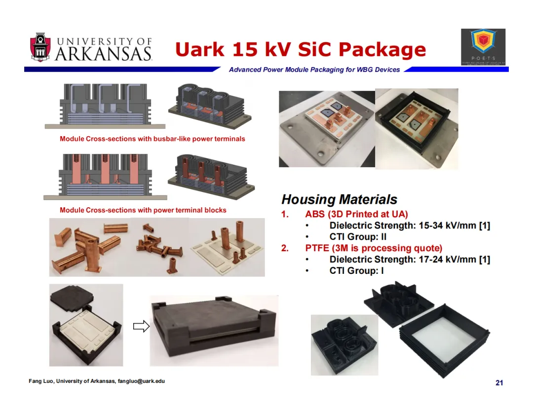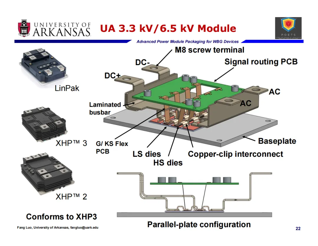 UARK开发的6.5 kV无键合线双面冷却模块,以及CPES的10 kV/54 A无键合线模块。