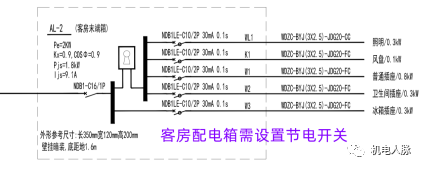 落实措施:各级旅馆客房配电箱进线开关处应设置节电开关。
