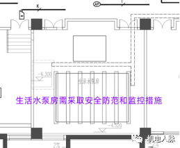 生活水泵房、水箱间的监控措施包括安全防护和设施数据的监控措施。以前的电气规范中没有对生活给水泵房安防措施的严格要求,该强条又出现在水专业规范中,有些电气设计人员不了解此强条内容,设计文件就未落实相关要求。