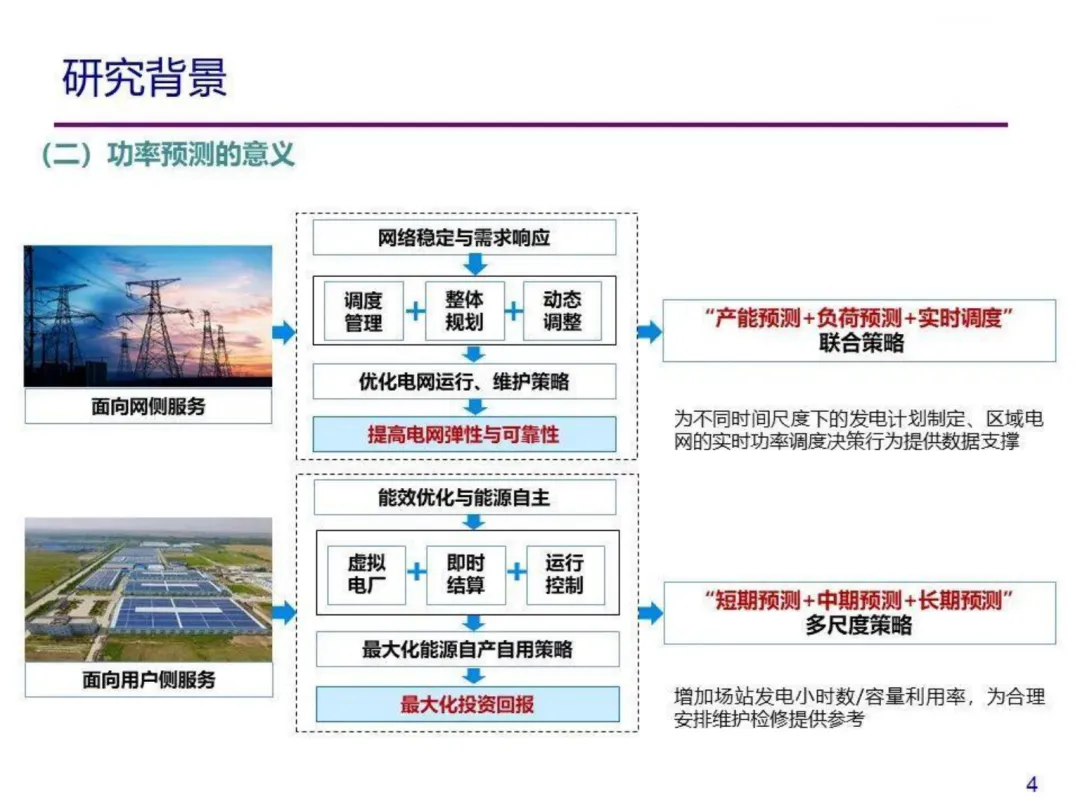 研究背景方面,我国分布式光伏发电呈爆发式增长,截至 2024 年底光伏装机容量达 357.3GW,占全球新增装机 60% 以上,分布式光伏已成为产业增长核心。功率预测对电网稳定运行、调度优化及用户能效提升至关重要,我国相关标准明确了不同时间尺度的预测准确率要求,其中超短期 4 小时预测准确率需≥90%。然而,光伏发电受辐照度、温度等气象因素影响显著,存在随机性与间歇性特征,且面临区域内电站差异大、独立建模难,以及气象预报不精确、传感器部署成本高等挑战,亟需高效的预测方法。