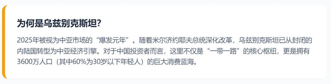2026年,对于想去乌兹别克斯坦搞钱的老板们来说,有两个绝对的重磅利好: