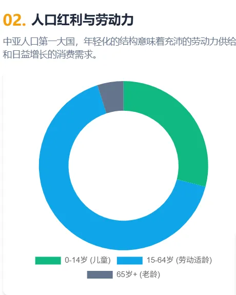 产能转移的最佳承接地:随着中国国内生产成本上升,乌兹别克斯坦凭借年轻的人口(平均年龄29岁)、低廉的劳动力成本(约为中国的1/3)和相对便宜的能源价格,成为中国纺织、建材、低端制造产能转移的理想目的地。