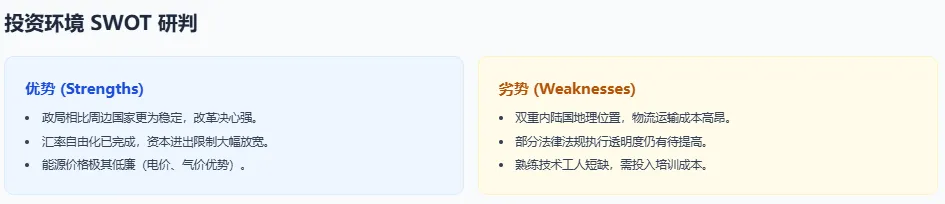 投资模式:适合软件开发、呼叫中心、数据标注等轻资产公司落地,利用当地懂俄语/英语的低成本人才(IT人才薪资约为中国的1/3)服务全球市场。