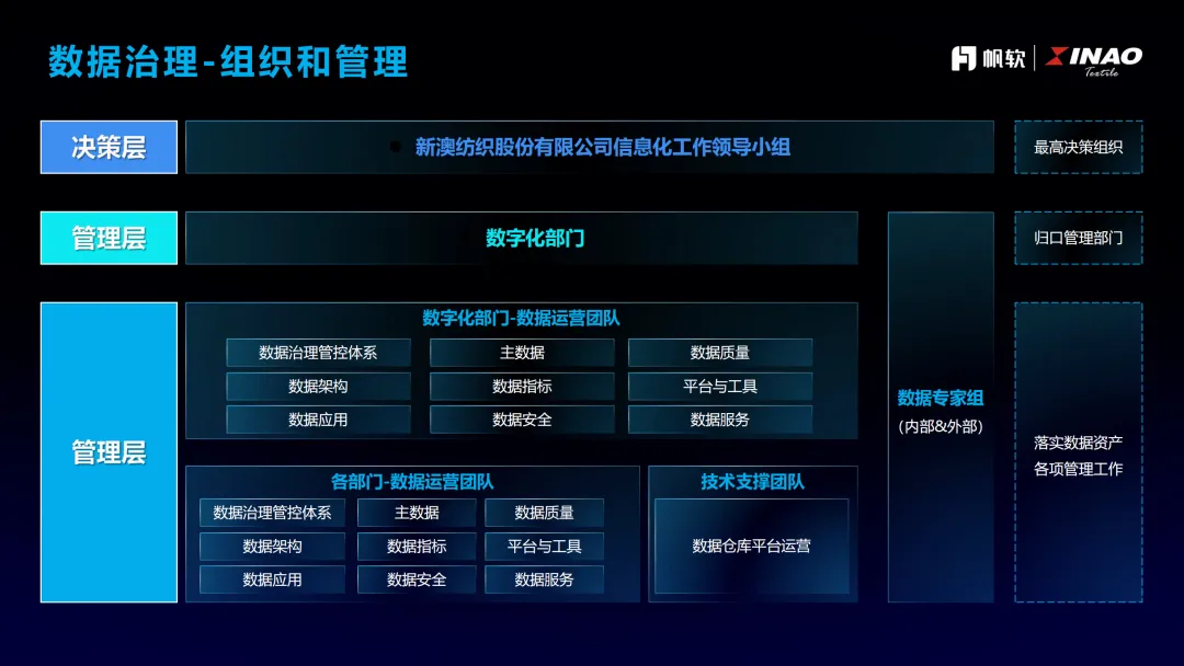 展望未来,新澳股份将坚持 “重系统、轻应用” 的思路,持续深化数据治理工作。数字化建设是持续演进的过程,公司将不断优化数据治理体系,强化数据在销售营销、生产运营等各业务领域的应用,助力企业在市场竞争中持续耕耘,深化品牌价值。