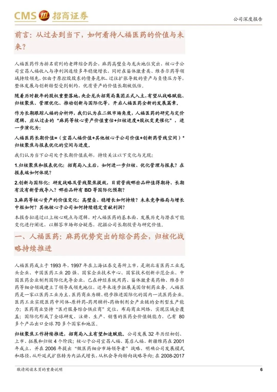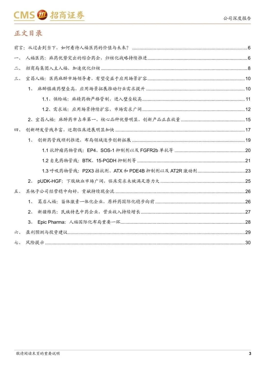 人福医药作为老牌综合性药企,麻药龙头地位突出,甾体激素类、 维吾尔药等领域持续领先,并积极投入创新研发。招商局集团控股后,有望改善公司股东结构,注入新动能,促进内生式增长:优化管理、财务,迭代研发体系,开启归核聚焦与创新转型的全新篇章;同时有望开启外延式增长。