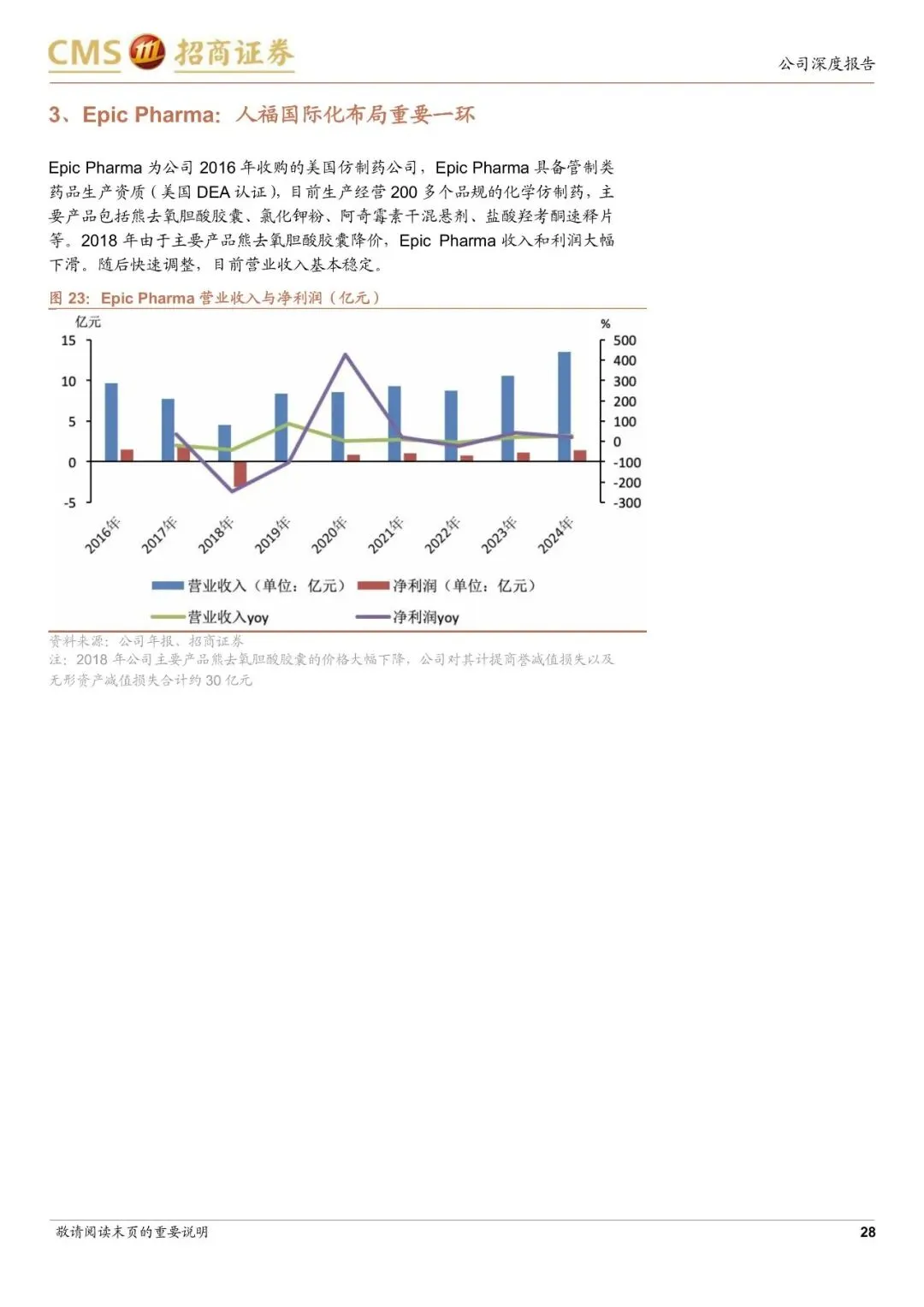 多家子公司经营稳中向好,贡献持续现金流。新疆维药为民族特色中药企业,差异化优势突出,营业收入持续增长。葛店人福是甾体激素一体化企业,原料药国际化稳步向前。美国制药企业 Epic Pharma 是人福国际化重要一环。以上及其他子公司均经营稳定,持续为人福医药贡献现金流。
