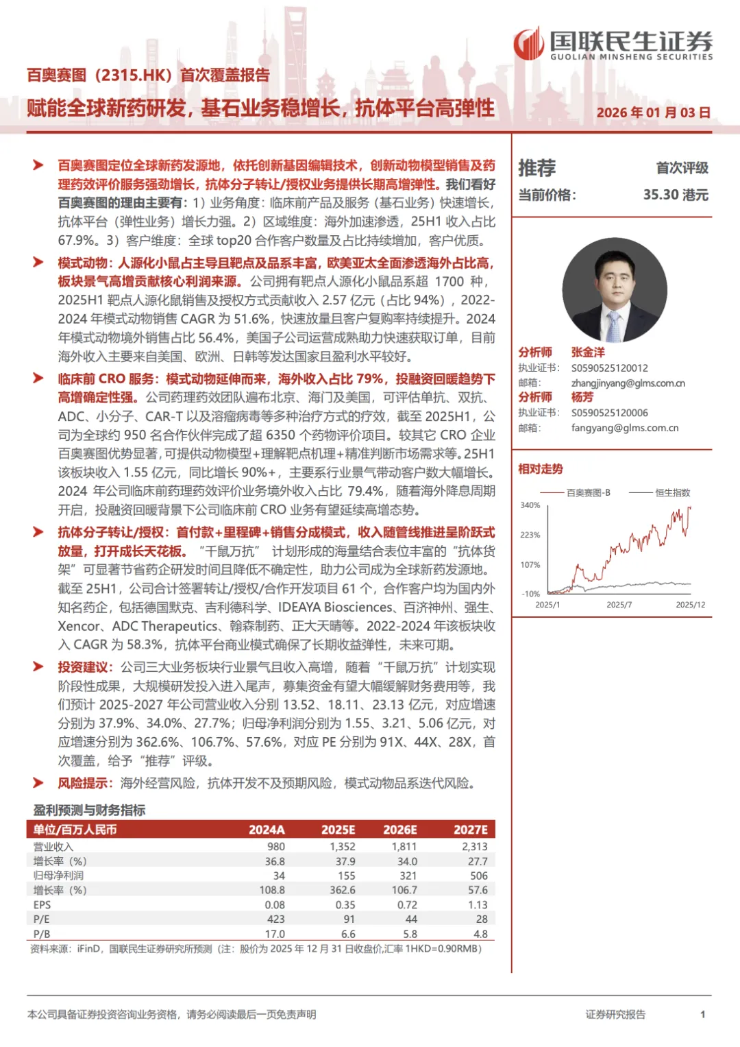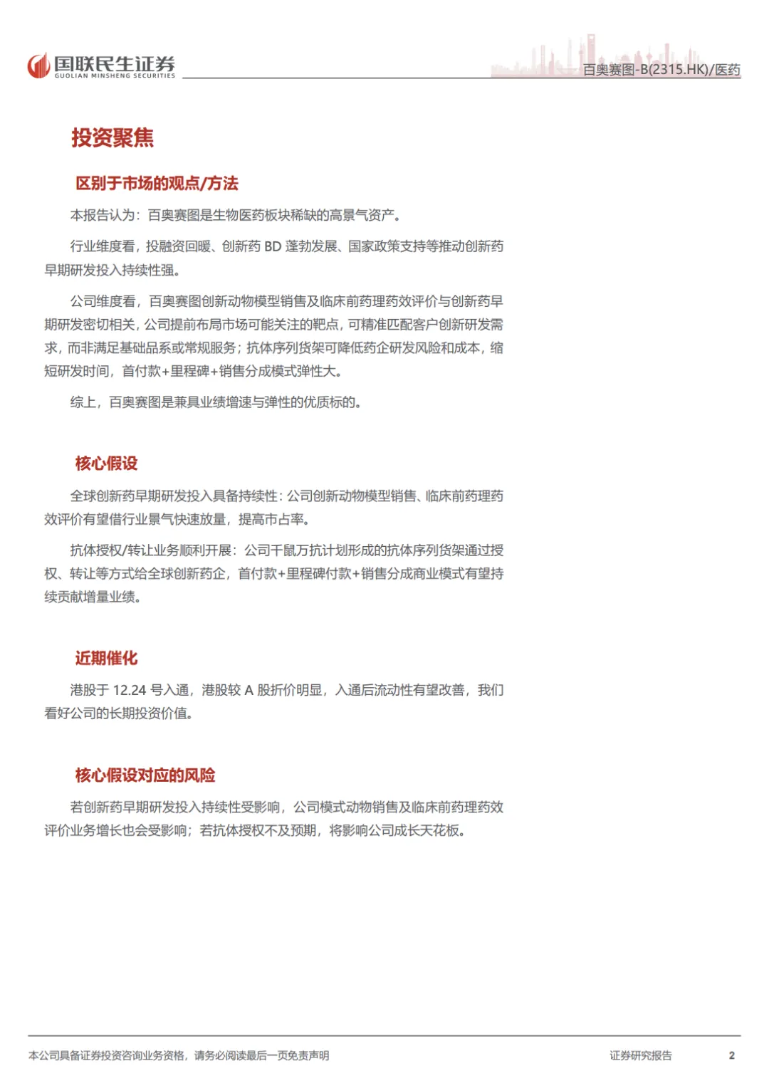 证券研究报告:《 百奥赛图(2315.HK)首次覆盖报告:赋能全球新药研发,基石业务稳增长,抗体平台高弹性》