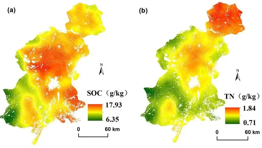 东北玉米带是世界四大黑土集中区之一。了解土壤有机碳和氮含量的空间变异性及其影响因素,是实现适宜农业和耕地管理的第一步。土壤有机碳和全氮含量与气候、植被覆盖、地势和农业管理有关。通过探究环境对土壤有机碳和TN变异性的影响,并评价环境因子的相对重要性,为土地使用者提供现实的指导,并为可持续土地利用和管理提供基本数据具有重要意义。
