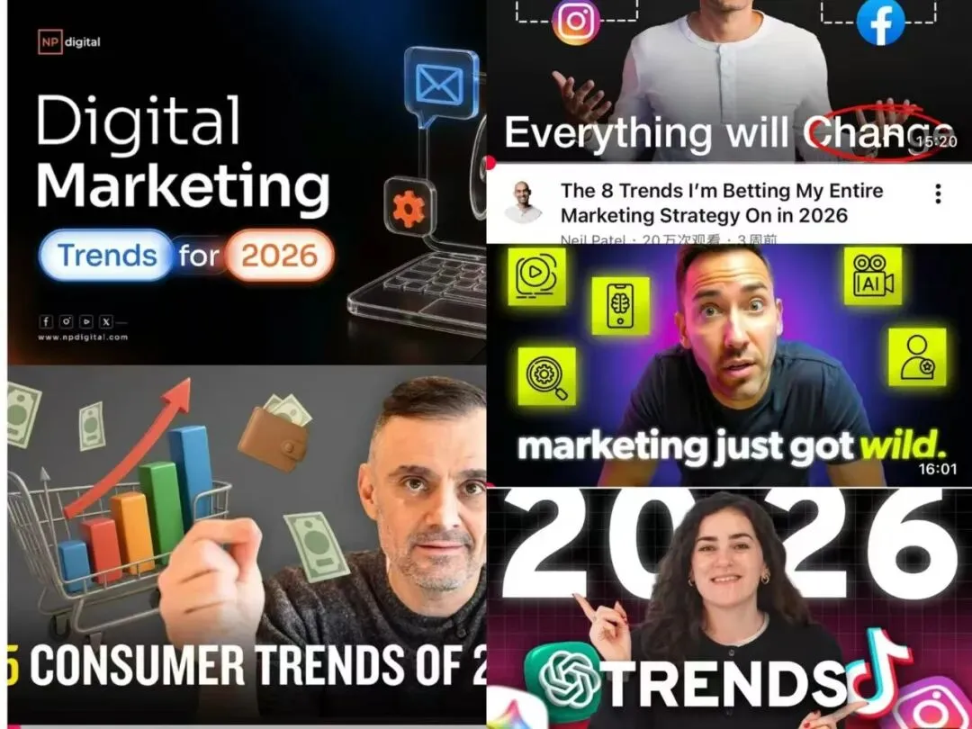 元旦假期,我在油管上刷了20多个顶级营销专的营销预测视频,从老牌大咖 Neil Patel,到一批新锐专家,最后发现:
