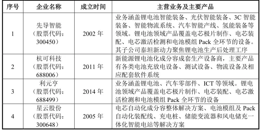 先导智能、杭可科技、利元亨和星云股份等同行业主要厂商已陆续通过上市提升资本实力及研发能力,通过外延并购和自主研发迅速丰富产品系列,建立较强的竞争优势。
