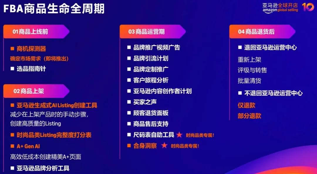 在明确市场趋势后,善用运营工具成为提升效率、降低成本的关键。亚马逊为时尚类目卖家提供了从选品到退货的全链路工具支持,帮助卖家精准把握商机、优化运营流程。