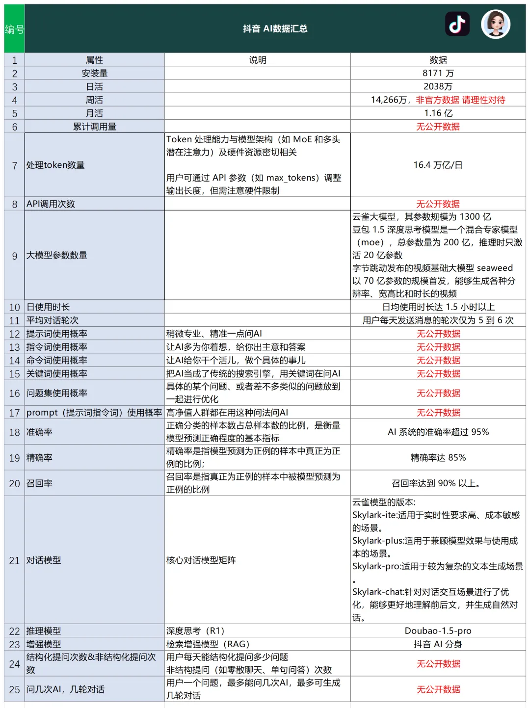 抖音2025年月活跃用户(MAU)规模约为9.07亿。本文对2025 抖音平台数据进行汇总(AI搜索GEO优化策略+日月周活+安装量+2026营销数据报告)预计到 2026年,抖音的营销体系将深度整合 AI 技术与搜索生态系统,不断创作并输出高质量+高价值的内容,从而获取抖音 搜索板块持续增长的流量资源。