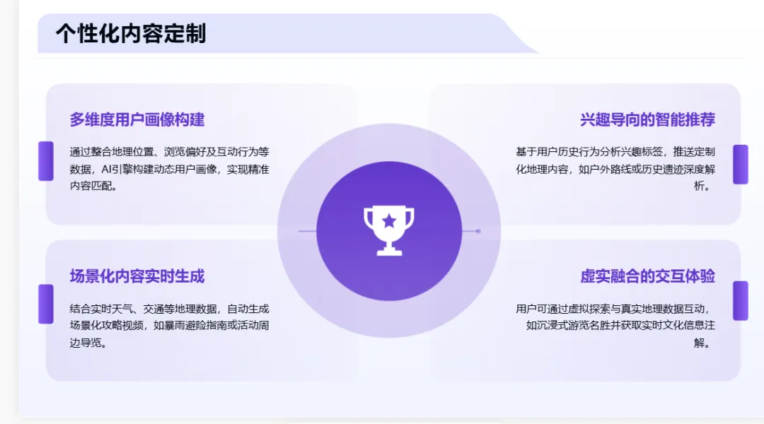 个性化地理内容生成:根据用户的地理位置、兴趣偏好、历史浏览记录等,利用AI GEO生成引擎为用户定制个性化的地理内容。比如,为喜欢户外运动的用户生成其所在区域周边适合徒步、骑行的路线及相关攻略视频;为历史文化爱好者生成当地历史遗迹的深度讲解视频。