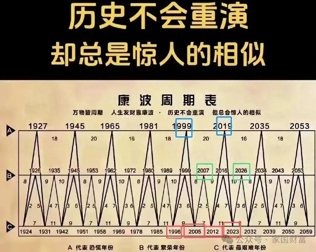 依照康波周期图,2026起的未来6年是一个中级衰退周期。我们仍处于2019-2032的“大冰期”即寒冬大周期里。