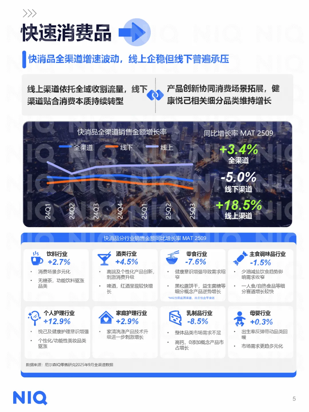 零售渠道方面,线上线下深度融合,线上内容电商增速达 27%,成为新增量引擎,综合电商稳固基本盘;线下渠道分化,会员店、零食店、O2O 前置仓等新兴渠道增速亮眼,大卖场等传统业态加速调改,通过场景重塑、商品升级、自有品牌扩张激活客流。自有品牌从 “低价吸引” 迈向 “价值认同”,56% 中国消费者愿购买更多自有品牌,其销量增长率达 12.9%。即时零售重构消费模式,从 “约定” 转向 “随时”,深夜美食、赛季狂欢等场景驱动需求增长,未来更将迈向 AI 赋能的 “智场” 阶段,实现需求预判与精准响应。