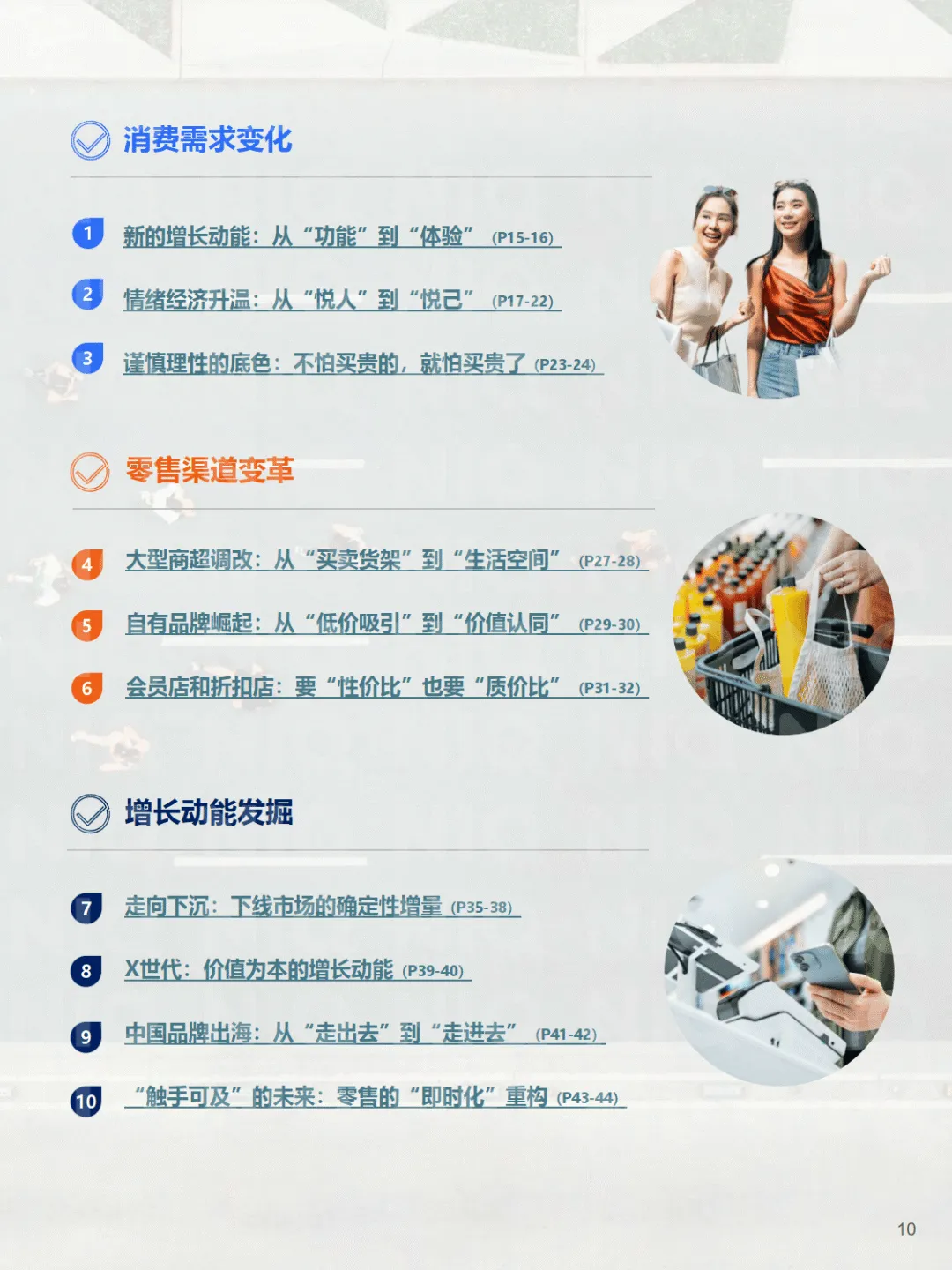增长动能挖掘上,下沉市场仍是硬增量,2024 年乡村零售增速 4.3% 高于全国水平,政策支持、物流升级与消费升级形成合力,需通过本地化策略挖掘潜力。X 世代(44-59 岁)成为价值为本的增长引擎,务实极简、家庭导向与低调品味是其消费特征。中国品牌出海进入深本土化阶段,快消品聚焦东南亚与东亚市场,通过文化融入与供应链本地化突围;耐消品面临政策适配挑战,需实现系统级本土化。