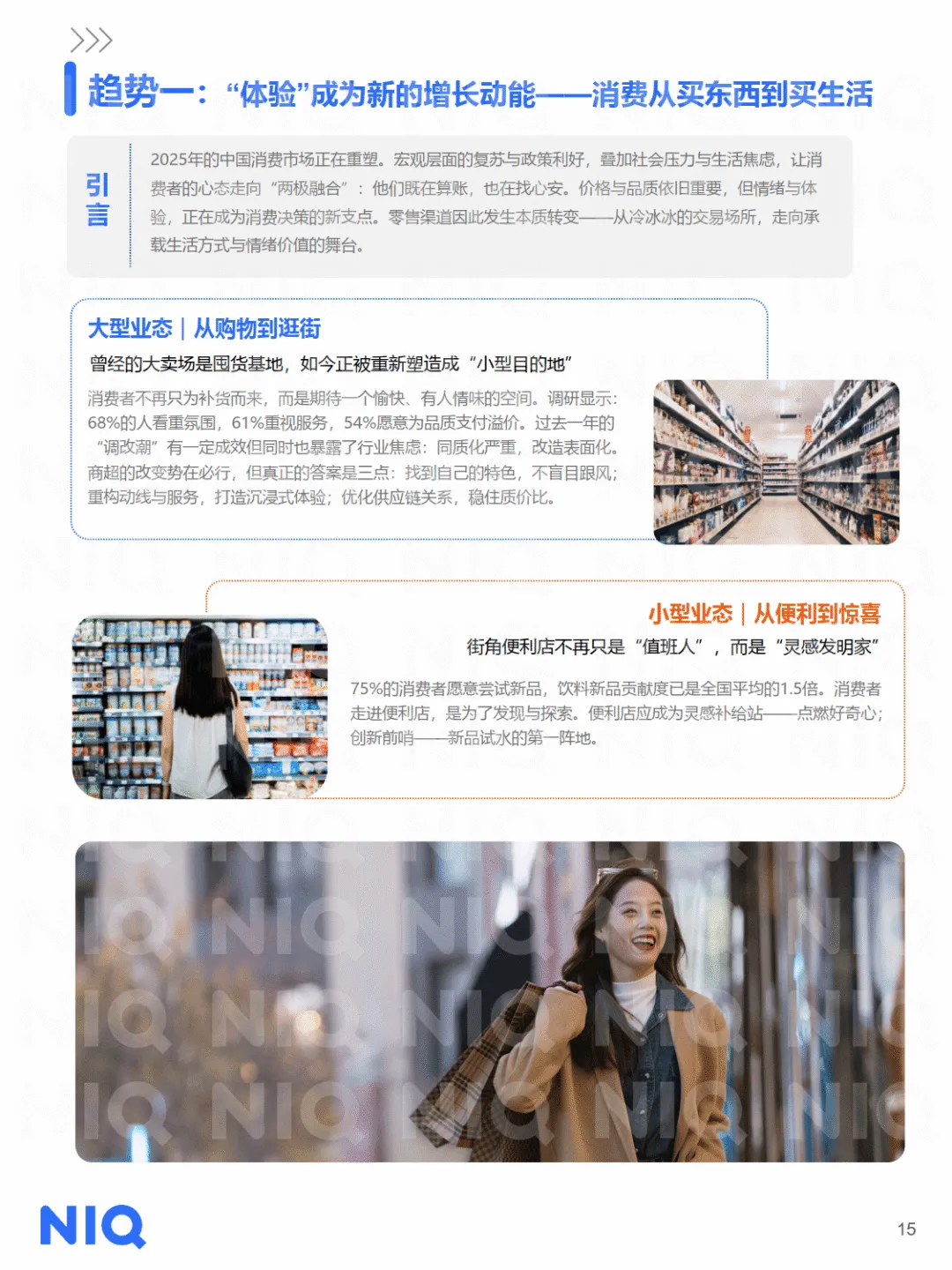 消费需求层面,体验取代功能成为新增长动能,消费者从 “买东西” 转向 “买生活”,大型商超向 “生活体验地标” 转型,便利店追求 “惊喜感”,即时零售成为 “随叫随到的密友”。情绪消费升温,从 “悦人” 转向 “悦己”,健康、便利、文化认同等成为核心诉求,单身经济、宠物经济、银发经济蓬勃发展,AI 赋能让智能产品成为 “懂我” 的陪伴,62% 消费者使用 AI 功能产品,但溢价意愿更趋理性。消费心态谨慎理性,性价比内涵从 “低价” 转向 “长期划算”,质价比聚焦功效、创新与可信度,82% 消费者愿为便捷产品多花钱,66% 优先选择健康产品。