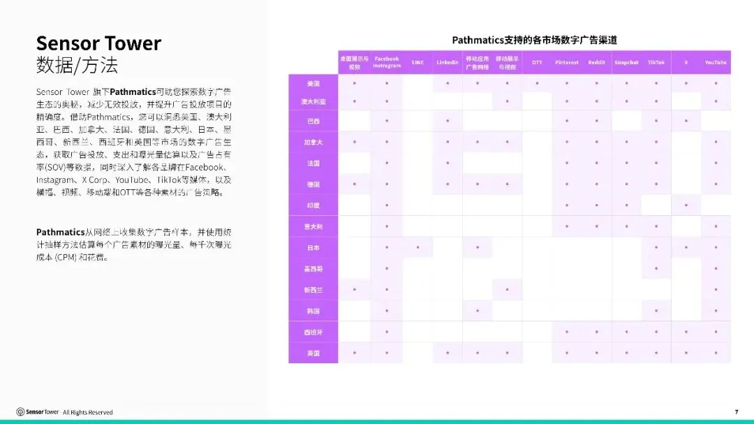 自2013年成立以来,Sensor Tower的移动应用洞察助力营销专家、应用开发者及游戏制作者透过使用情况、参与度及付费获取策略,洞悉移动应用生态的奥秘。时至今日,我们的数字市场洞察平台已涵盖受众、零售媒体Pathmatics数字广告洞察,让品牌与广告公司能够全方位掌握其在网络、社交及移动平台上的竞品广告策略与目标受众。