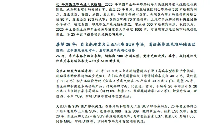 乘用车:26 年总量平淡,看好国内高端化和新能源进军欧洲市场