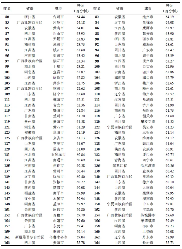 为方便阅读,市政府财政透明度排行榜是换算为百分制后的计分。报告显示,从分布结构看,得分60及以上的城市数量增至144个,其中132个城市得分处于60-70区间,12个城市超过70分。高分城市规模较往年扩大,财政公开的普及性与整体质量同步提升,但无城市突破80分,表明市级政府财政透明度建设仍有较大的改进空间。从具体指标表现来看: