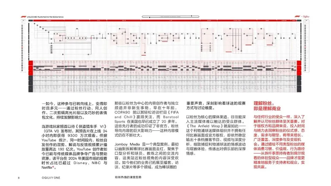 报告提出“开放场”模型:品牌须建设自有内容平台并主动共享叙事权,通过App、智能场馆与第一方数据沉淀粉丝资产。案例:Spotify因巴萨粉丝数据缺失错失更高赞助费;NASCAR升级代托纳赛道网络,闸机实时数据优化入场体验。成功路径覆盖“发现-触达-转化-续费”全周期:NBA放宽高光二创、奥运App一站式故事、英超Fantasy全民游戏、F1好莱坞级幕后片、德甲50+1共治机制,皆以“真实参与”锁住情感,最终驱动商业可持续增长。
