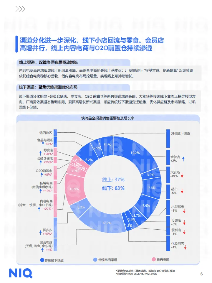 零售渠道方面,线上线下深度融合成为主流。线上渠道中,综合电商稳固基本盘,内容电商高速增长成为新增量引擎,O2O前置仓等即时零售渠道持续渗透;线下渠道分化明显,会员店、零食店等新兴业态增速亮眼,大卖场等传统业态通过场景重塑、商品升级向“生活空间”转型。即时零售从“救火工具”升级为“随叫随到的密友”,实现从“约定”到“随时”的跨越,而AI与数据正开启“智场”新阶段,让零售在需求未开口前即提前响应。