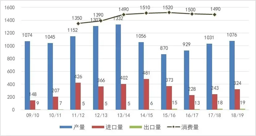 [2] 全国食糖产销数据, 制糖期进出口数据,中国糖业协会.