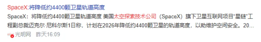 而且不光如此,SpaceX 2026年预计还要降低约4400颗卫星的轨道高度,一个是为了维护空间安全。另一个是继续降低发射成本。