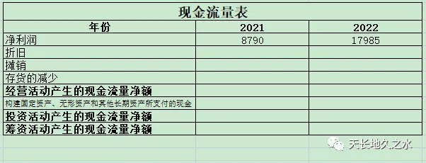所以经营活动产生的现金流量净额在我这张简表就等于,净利润+折旧+摊销+存货的减少。这个值就是说一家公司这一年到底挣了多少钱。