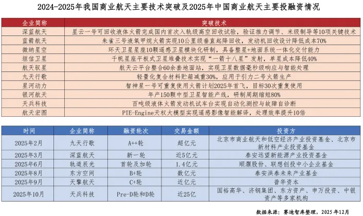 - 资本端:全年融资超 300 亿元、事件 120 起,科创板第五套标准加速商业航天企业上市,中科宇航等企业启动 IPO 辅导,央地风险资本支持力度增强。