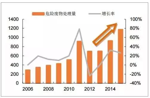 危险废物处理量呈快速增长趋势