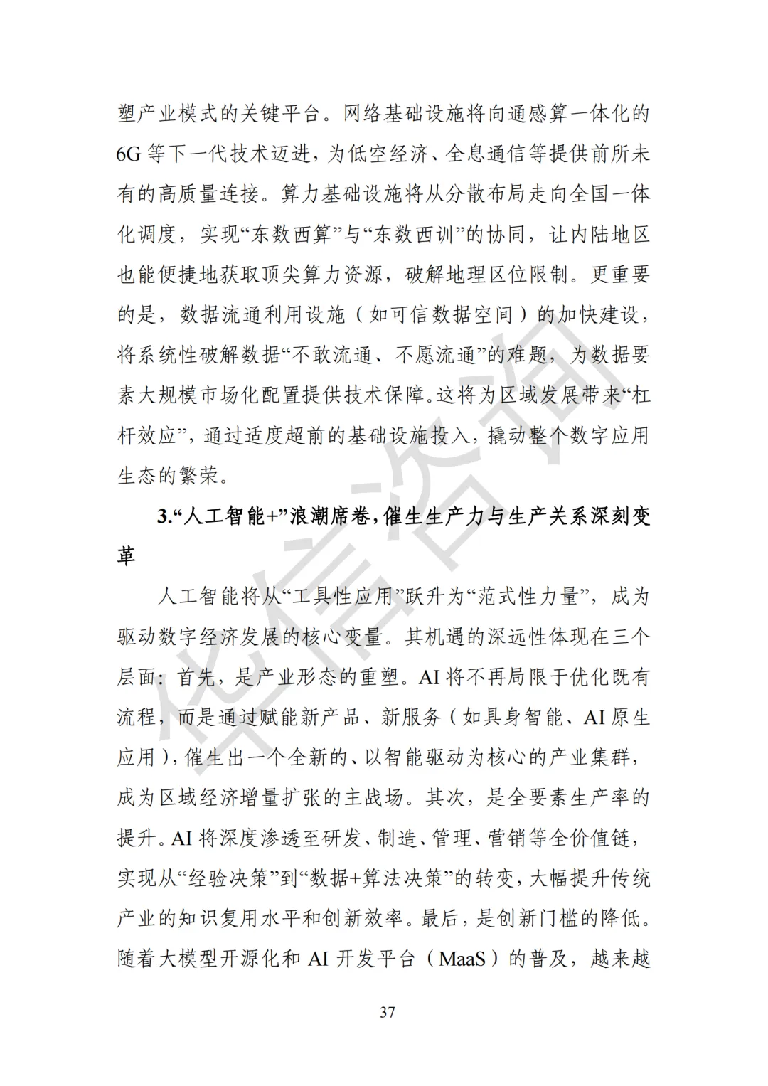 当报告指出“区域同质化竞争”风险时,它实际上在预警一个可怕趋势:人工智能等高端要素会加速向北上广深等中心城市聚集,形成数字时代的“中心-边缘”结构。留给其他城市的时间窗口,是在被完全“算法殖民”前,找到自己的特色化、不可替代的数字化生态位。