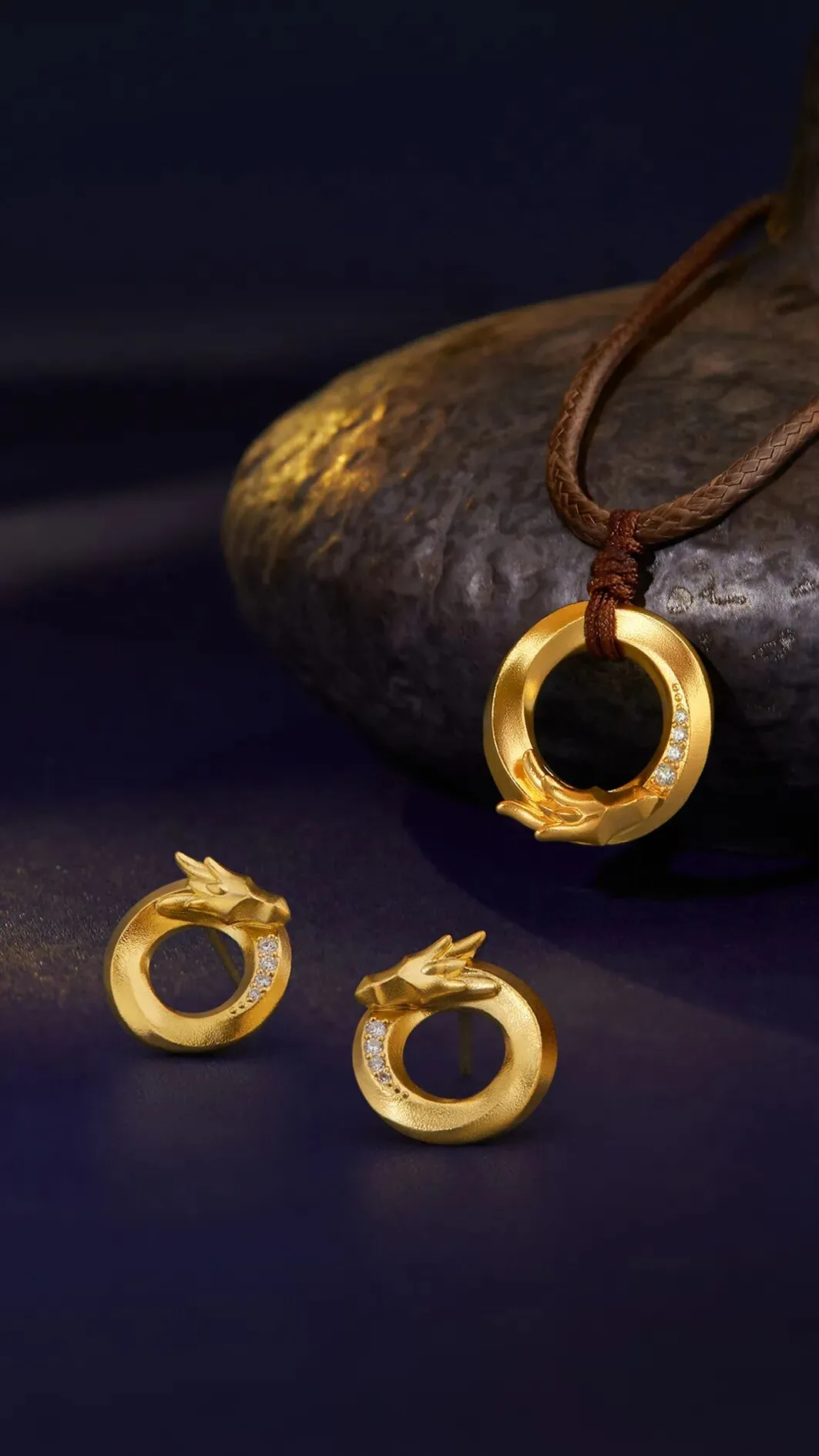 作为老庙·古韵金系列的立潮之作,老庙·古韵金“富富有余”系列延续“古韵弄新潮”的理念,以“鱼化龙”的文化故事为灵感,将鱼和龙作为设计载体,融合了东方文化元素和现代潮流设计。此系列珠宝将传统文化中的“富”,以契合当下消费群体心理需求和价值取向的独到视角进行解读和演绎,不仅呈现出独特的风格和品味,更借此与当下年轻人实现品牌沟通和情感共振。老庙·古韵金“富富有余”系列期待大家能够拥抱物质和精神的双重富裕,也传递了品牌“奔富余年”的美好祝福。