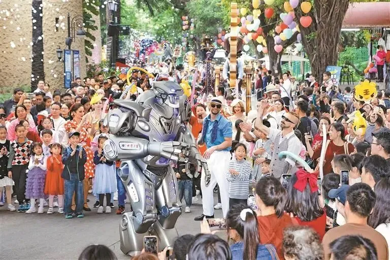 //2025年12月31日至2026年1月1日,深圳世界之窗“闪光迎新季”迎来跨年与元旦盛典。元旦当天,园区内巨型机甲与游客趣味互动,“鎏金岁月”新年演唱会等演艺活动持续上演,让游客在科技与欢乐的盛宴中迎接新年。