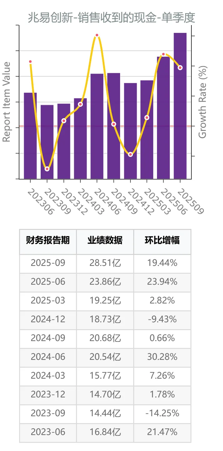 2025年以来,兆易创新公司的季度营业收入加速增长,营业利润以更大增长弹性创近期新高。公司销售商品收到的现金同步增长,存货周转率和应收账款周转率均显著提升,反映公司商品的市场需求较为强烈,增长趋势有望延续。
