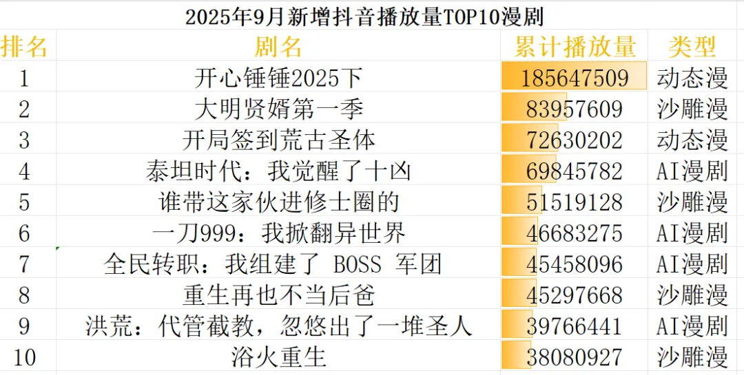 2025年可谓“AI短剧元年”。短剧数据平台DataEye对抖音每月TOP5000短剧数据分析显示,1月上榜的全AI生成微短剧只有4部,10月时已有69部,11月达到217部。与真人微短剧相比,AI 技术能快速生成动画微短剧的角色与场景,后期制作与修改也更灵活。这使得动画微短剧不仅实现了高效制作,更在传统影视领域的高门槛题材上,展现出独特的适配性与广阔的创作空间。而根据画面精致程度不同,AI短剧一般分为以下几种:比较逼真的AI仿真人剧,类似漫画动起来的AI漫剧,以及做工较简单、内容开脑洞的搞笑表情包漫剧。