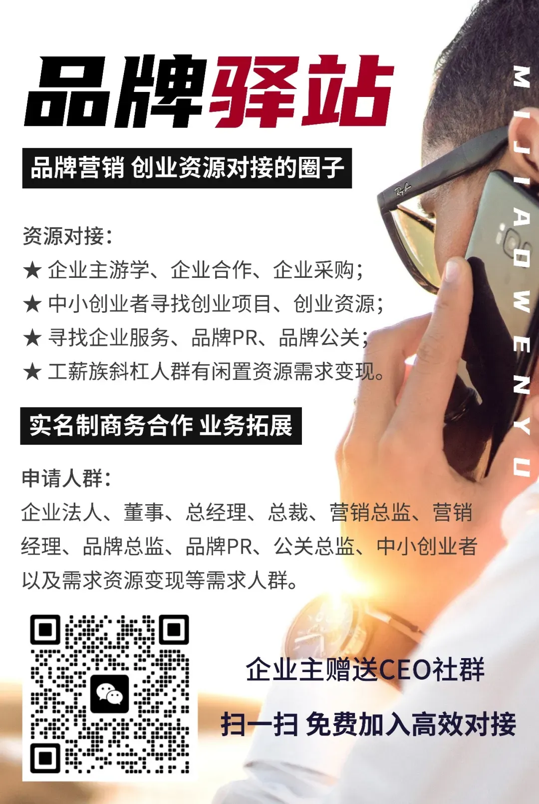 品牌驿站是一个专注全球品牌营销、广告传媒人的圈子,这里有各行业品牌方、4A广告,用户增长、传媒公关公司以及独立达人、中小中小创业者、资源变现人群。合适找各种品牌方、找明星模特、找达人素人等等资源,商务合作,业务扩展高效对接。