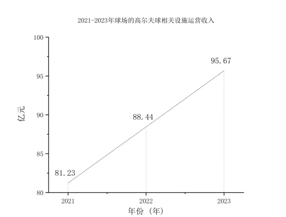 在高尔夫球相关设施运营方面,根据抽样球场的数据测算,我国高尔夫球场2021年共产生81.23亿元收入,平均每个球场产生2432万元收入;2022年共产生88.44亿元,平均每个球场产生2648万元收入;2023年共产生95.67亿元,平均每个球场产生2864万元收入,近三年呈上升趋势,总收入年均增长率为8.54%。