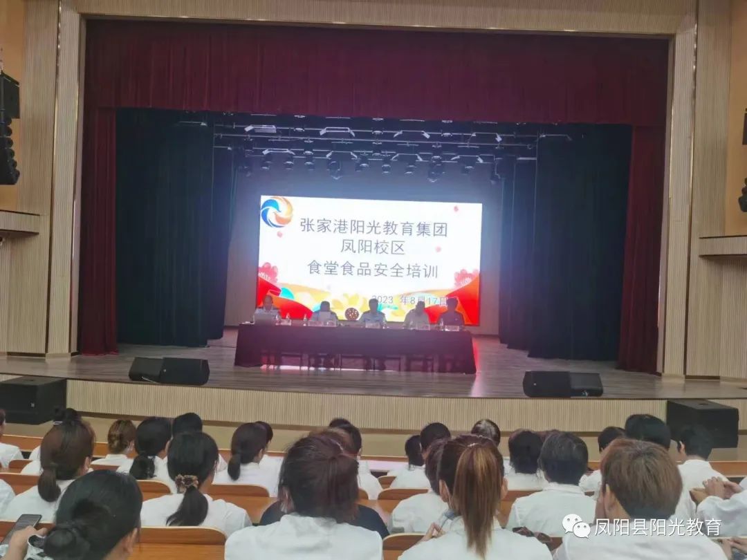 2023年8月17日下午4时,张家港阳光教育集团凤阳校区,召开了食品安全培训会,主要目的是进一步夯实校园食品安全主体责任,提升从业人员食品安全知识水平,提高校园食品安全风险防控能力,保障全校师生的饮食安全。