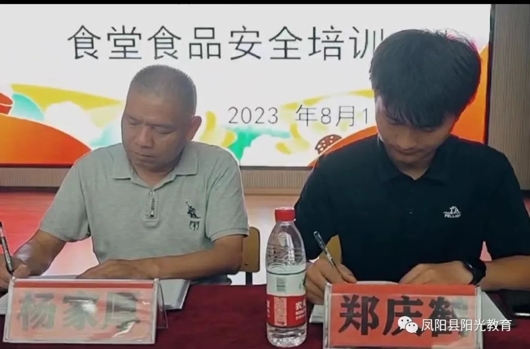 在新的学期,期望我们共同努力,为全校师生构建一个良好的食品安全环境,为孩子们的健康成长保驾护航。下午的培训会议,凤阳县电视台在第一时间作了报道。