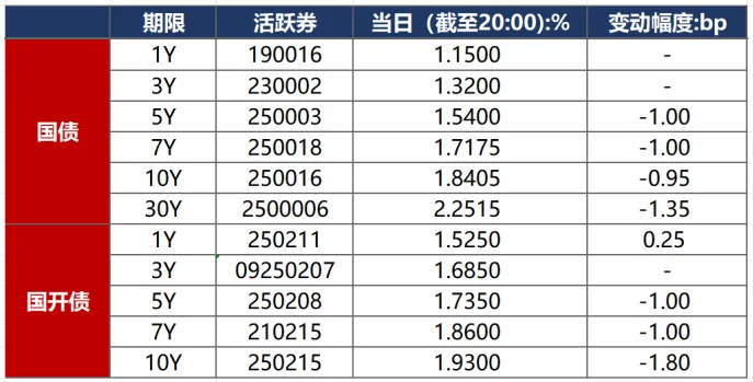 1月4日,基金申赎新规落地,明显宽松于此前预期,市场情绪有所修复,债市在2026年首个交易日上演开门红。截至北京时间20:00,10年期国债活跃券250016收益率下行0.95bp至1.8405%,10年期国开债活跃券250215收益率下行1.80bp至1.9300%。