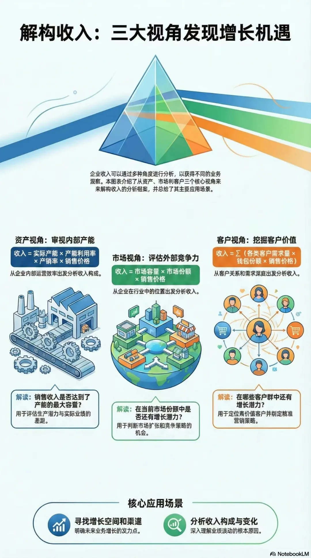 客户角度:收入=TOP类客户需求量*钱包份额*销售价格+一般类客户需求量*钱包份额*销售价格+......