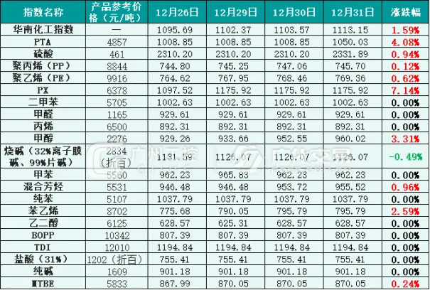 图1:华南化工指数当周参考数据(基数:1000),参考价为贸易商报价
