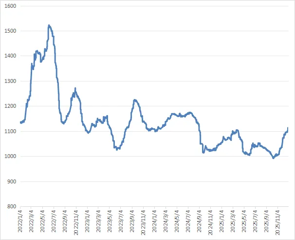 图2:2022年1月—2025年12月华南指数走势(基数:1000)
