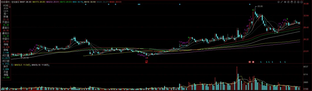 静态PE、动态PE、最新价分别为:29.25、24.35、30.83