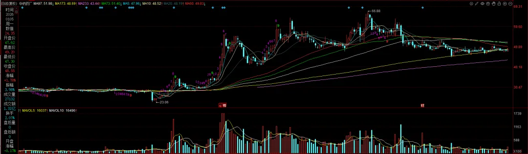 处于“仿创结合”战略收获初期:仿制药管线已成型,正批量转入国家集采;创新药进入临床兑现期(3个1类新药处于Ⅱ/Ⅲ期);同时启动两大绿色智造基地,由“小型特色药企”向“中型综合制药平台”跃升,属于成长中期加速阶段。