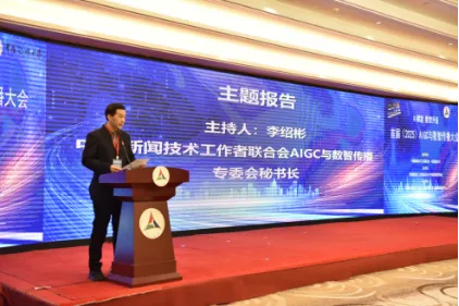 主题报告第二场由中国新闻技术工作者联合会AIGC与数智传播专委会秘书长,中国传媒大学学报《信息传播研究》常务副主编李绍彬主持,四位业界专家作主题演讲。